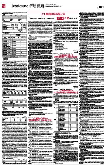 TCL集团股份有限公司2012年度报告摘要及公告(系列)