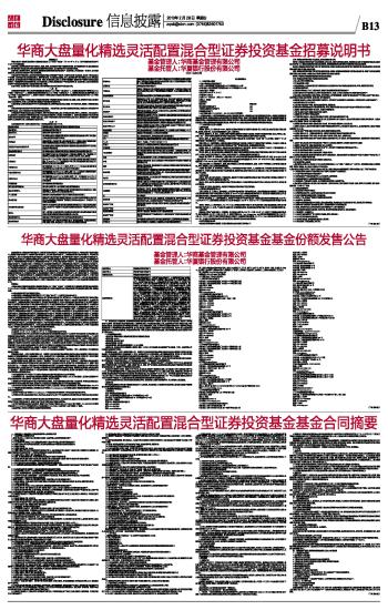 华商大盘量化精选灵活配置混合型证券投资基金基金份额发售公告