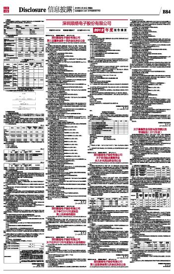 深圳顺络电子股份有限公司2012年度报告摘要及公告(系列)