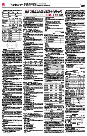 贵州百灵企业集团制药股份有限公司2012年度报告摘要及公告(系列)
