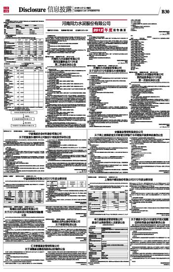 河南同力水泥股份有限公司2012年度报告摘要及公告(系列)