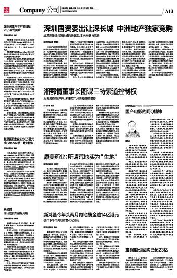 深圳国资委出让深长城 中洲地产独家竞购此前连番增持深长城的联泰系,本次未参与竞购 2013-03-04 来源:证券时报网 作者:李雪峰