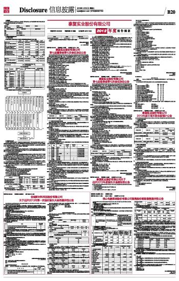 泰复实业股份有限公司2012年度报告摘要 2013-03-06 来源:证券时报网 作者: