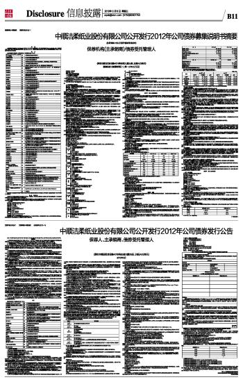 中顺洁柔纸业股份有限公司公开发行2012年公司债券发行公告 2013-03-06 来源:证券时报网 作者: