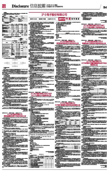 沪士电子股份有限公司2012年度报告摘要