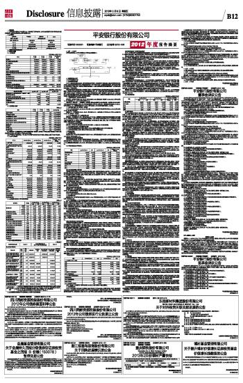 平安银行股份有限公司2012年度报告摘要 2013-03-08 来源:证券时报网 作者: