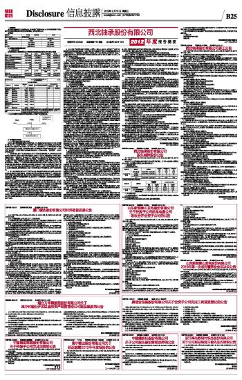 证券代码:000595 证券简称:*ST西轴 公告编号:2013-007 西北轴承股份有限公司2012年度报告摘要及公告(系列) 2013-03-13 来源:证券时报网 作者: