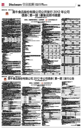 股票简称:黑牛食品 股票代码:002387 黑牛食品股份有限公司公开发行2012年公司债券(第一期)募集说明书摘要(住所:汕头市潮汕路金园工业城内9A5A6) 2013-03-14 来源:证券时报网 作者: