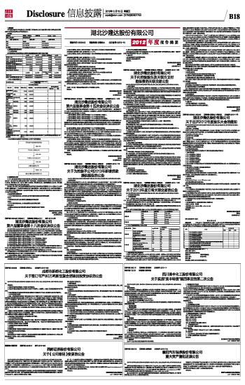 证券代码:000553 证券简称:沙隆达A 公告编号:2013-15 湖北沙隆达股份有限公司2012年度报告摘要及公告(系列) 2013-03-15 来源:证券时报网 作者: