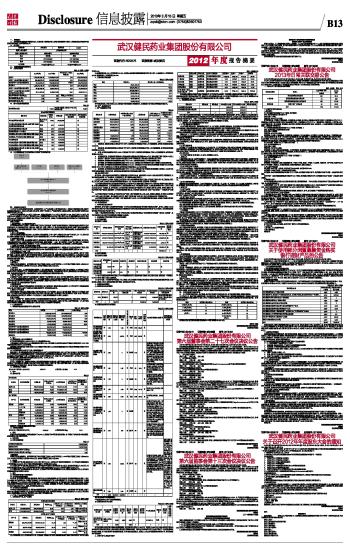 武汉健民药业集团股份有限公司2012年度报告摘要及公告(系列)