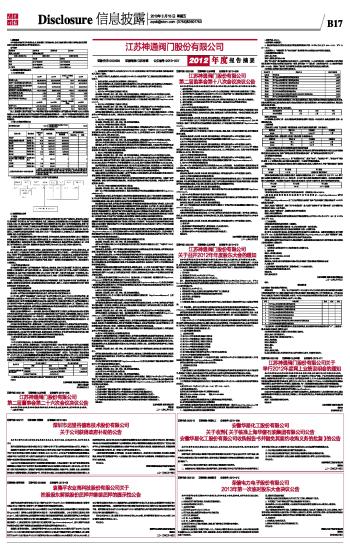 江苏神通阀门股份有限公司2012年度报告摘要及公告(系列)