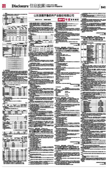 证券代码:600756 证券简称:浪潮软件 山东浪潮齐鲁软件产业股份有限公司2012年度报告摘要及公告(系列) 2013-03-16 来源:证券时报网 作者: