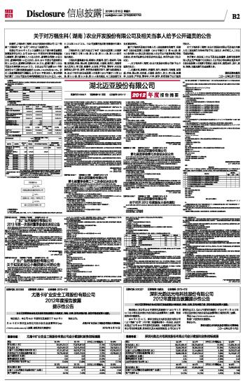 湖北迈亚股份有限公司2012年度报告摘要及公告(系列)