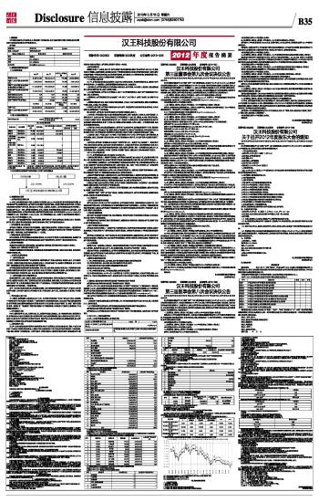 汉王科技股份有限公司2012年度报告摘要及公告(系列)