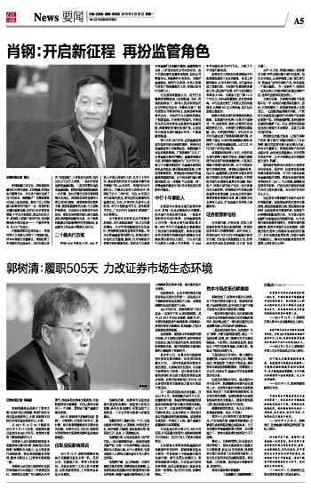 对于股市的下跌,监管部门应该承担一定的责任,但不是等于完全的责任和绝大部分的责任。最近,也注意到股民、网民的意见,其中有很多是非常尖锐的批评性意见,这都有助于这个市场发展,有助于提高市场的透明度和公正水平,我们接受大家的批评。 ——2013年1月,郭树清在全国证券期货监管工作会议讲话。 本版导读: