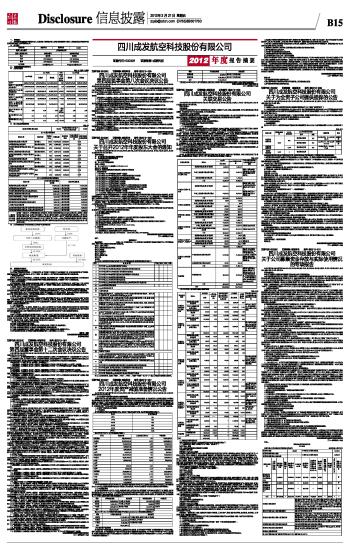 四川成发航空科技股份有限公司2012年度报告摘要 2013-03-21 来源:证券时报网 作者: