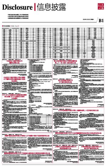 深市主板 000055 方大集团 B14 000066 长城电脑 B21 000090 深天健 B29 000151 中成股份 B1 000507 珠海港 B27 000519 江南红箭 B34 000533 万家乐 B30 000536 华映科技 B20 000543 皖能电力 B45 000562 宏源证券 B28 000565 渝三峡A B35 000589 黔轮胎A B16 000592 中福实业 B24 000610 西安旅游 B34 000630 铜陵有色 B19 000635 英力特 B36 000656 金科股份 B27 000688 *ST朝华 B30 000707 双环科技 B13 000711 天伦置业 B44 000736 中房地产 B34 000738 中航动控 B29 000751 *ST锌业 B25 000792 盐湖股份 B40 000815 *ST美利 B24 000816 江淮动力 B40 000831 *ST关铝 B20 000856 冀东装备 B30 000860 顺鑫农业 B2 000885 同力水泥 B27 000917 电广传媒 B17 000931 中关村 B32 000948 南天信息 B16 000950 建峰化工 B3 000963 华东医药 B29 000966 长源电力 B3 000972 *ST中基 B1 000973 佛塑科技 B22 000975 科学城 B34 000999 华润三九 B17 深市中小板 002002 金材股份 B29 002014 永新股份 B1 002022 科华生物 B16 002028 思源电气 B31 002040 南京港 B27 002084 海鸥卫浴 B30 002089 新海宜 B20 002092 中泰化学 B28 002097 山河智能 B28 002117 东港股份 B35 002133 广宇集团 B28 002144 宏达高科 B40 002148 北纬通信 B2 002158 汉钟精机 B12 002164 东力传动 B29 002197 证通电子 B33 002200 *ST大地 B36 002201 九鼎新材 B17 002202 金风科技 B18 002205 国统股份 B34 002208 合肥城建 B29 002227 奥特迅 B36 002229 鸿博股份 B33 002232 启明信息 B23 002249 大洋电机 B24 002255 海陆重工 B29 002274 华昌化工 B25 002276 万马电缆 B45 002306 湘鄂情 B14 002307 北新路桥 B27 002323 中联电气 B21 002329 皇氏乳业 B24 002338 奥普光电 B30 002347 泰尔重工 B13 002353 杰瑞股份 B10,B11 002356 浩宁达 B33 002390 信邦制药 B19 002405 四维图新 B31 002415 海康威视 B25 002421 达实智能 B35 002437 誉衡药业 B27 002452 长高集团 B45 002457 青龙管业 B19 002471 中超电缆 B14 002481 双塔食品 B31 002506 ST超日 B1 002519 银河电子 B17 002530 丰东股份 B36 002538 司尔特 B28 002540 亚太科技 B29 002574 明牌珠宝 B41 002601 佰利联 B4 002615 哈尔斯 B21 002616 长青集团 B28 002617 露笑科技 B1 002632 道明光学 B33 002646 青青稞酒 B25 002654 万润科技 B35 002655 共达电声 B14 002661 克明面业 B28 002679 福建金森 B3 002696 百洋股份 B32 002699 美盛文化 B4 深市B股 200770 *ST武锅B B16 创业板 300045 华力创通 B3 300223 北京君正 B3 沪市主板 600075 新疆天业 B16 600084 中葡股份 B31 600132 重庆啤酒 B9,B11 600146 大元股份 B35 600162 香江控股 B21 600163 福建南纸 B1 600251 冠农股份 B6 600282 南钢股份 B32 600298 安琪酵母 B36 600312 平高电气 B35 600323 南海发展 B24 600350 山东高速 B35 600352 浙江龙盛 B32 600354 敦煌种业 B34 600369 西南证券 B27 600381 ST贤成 B14 600392 *ST天成 B29 600458 时代新材 B14 600520 中发科技 B19 600525 长园集团 B16 600535 天士力 B17 600545 新疆城建 B21 600548 深高速 B15 600642 申能股份 B25 600655 豫园商城 B3 600687 刚泰控股 B33 600743 华远地产 B2 600806 昆明机床 B15 600865 百大集团 B20 600884 杉杉股份 B37,B39 600885 宏发股份 B38,B39 600988 赤峰黄金 B1 601012 隆基股份 B30 601088 中国神华 B5,B6 601099 太平洋 B1 601100 恒立油缸 B26,B27 601101 昊华能源 B20 601139 深圳燃气 B36 601616 广电电气 B15 601788 光大证券 B36 601789 宁波建工 B35 601808 中海油服 B8 601901 方正证券 B33 601908 京运通 B15 601918 国投新集 B14 603333 明星电缆 B4 基金 博时基金 B14 财通基金 B30 长盛基金 B34 长信基金 B6 德邦基金 B30 广发基金 B35 国海富兰克林 B34 国联安德盛稳健 B48 国投瑞银 B3 华安基金 B3 汇添富均衡增长 B46 基金净值 B3 嘉实基金 B31 金鹰策略配置 B47 诺安多策略 B7 泰信天天收益 B42 泰信周期回报 B43 信达澳银 B15 本版导读: