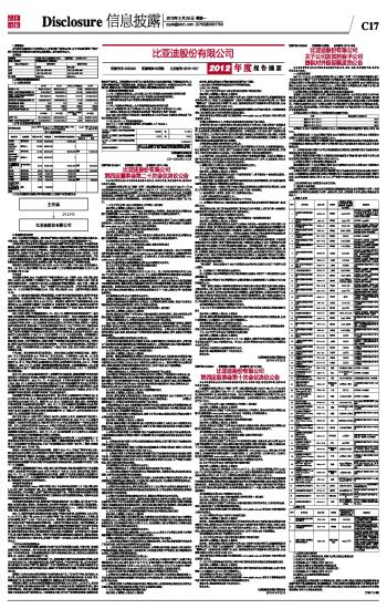 证券代码:002594 证券简称:比亚迪 公告编号:2013-007 比亚迪股份有限公司2012年度报告摘要及公告(系列) 2013-03-25 来源:证券时报网 作者: