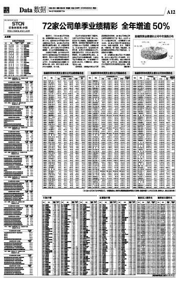 72家公司单季业绩精彩 全年增逾50%