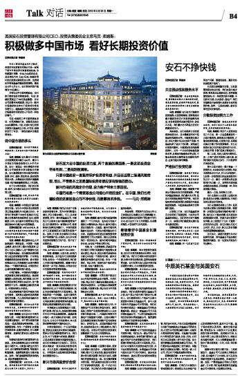 积极做多中国市场 看好长期投资价值