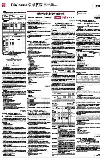 证券代码:002466 证券简称:天齐锂业 公告编号:2013-025 四川天齐锂业股份有限公司2012年度报告摘要及公告(系列) 2013-03-26 来源:证券时报网 作者: