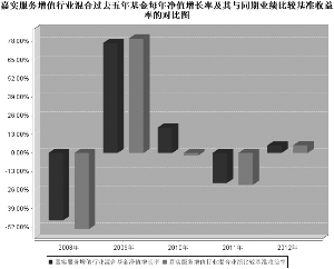 基金管理人:嘉实基金管理有限公司 基金托管人:中国银行股份有限公司 送出日期:2013年3月28日 §1 重要提示 基金管理人的董事会、董事保证本报告所载资料不存在虚假记载、误导性陈述或重大遗漏,并对其内容的真实性、准确性和完整性承担个别及连带的法律责任。本年度报告已经全部独立董事签字同意,并由董事长签发。 基金托管人中国银行股份有限公司根据本基金合同规定,于2013年3月22日复核了本报告中的财务指标、净值表现、利润分配情况、财务会计报告、投资组合报告等内容,保证复核内容不存在虚假记载、误导性陈述或者重大遗漏。 基金管理人承诺以诚实信用、勤勉尽责的原则管理和运用基金资产,但不保证基金一定盈利。 基金的过往业绩并不代表其未来表现。投资有风险,投资者在作出投资决策前应仔细阅读本基金的招募说明书及其更新。 本报告期自2012年1月1日起至2012年12月31日止。 本年度报告摘要摘自年度报告正文,投资者欲了解详细内容,应阅读年度报告正文。 §2 基金简介 2.1 基金基本情况 ■ 2.2 基金产品说明 ■ 2.3 基金管理人和基金托管人 ■ 2.4 信息披露方式 ■ §3 主要财务指标、基金净值表现及利润分配情况 3.1 主要会计数据和财务指标 金额单位:人民币元 ■ 注:(1)本期已实现收益指基金本期利息收入、投资收益、其他收入(不含公允价值变动收益)扣除相关费用后的余额,本期利润为本期已实现收益加上本期公允价值变动收益;(2)所述基金业绩指标不包括持有人认购或交易基金的各项费用,计入费用后实际收益水平要低于所列数字;(3)期末可供分配利润采用期末资产负债表中未分配利润与未分配利润中已实现部分的孰低数。 3.2 基金净值表现 3.2.1 基金份额净值增长率及其与同期业绩比较基准收益率的比较 ■ 注:本基金业绩比较基准为:中信综合指数×80%+中信国债指数×20%。 本基金的业绩基准指数按照构建公式每交易日进行计算,计算方式如下: Benchmark(0)=1000 Return(t)=80%×(中信综合指数(t)/中信综合指数(t-1) -1)+20%×(中信国债指数 (t)/中信国债指数 (t-1) -1) Benchmark(t)=(1+Return (t))×Benchmark (t-1) 其中t=1,2,3,…。 3.2.2 自基金合同生效以来基金份额累计净值增长率变动及其与同期业绩比较基准收益率变动的比较 ■ 图:嘉实服务增值行业混合份额累计净值增长率与同期业绩比较基准收益率的历史走势对比图 (2004年4月1日至2012年12月31日) 注:按基金合同规定,本基金自基金合同生效日起6个月内为建仓期。建仓结束时本基金的各项投资比例符合基金合同第十八条((二)投资范围和(六)投资组合比例限制)的约定:(1)在正常市场情况下,本基金资产配置的比例范围:股票资产25%-95%;债券资产0%-70%;现金或到期日在一年以内的政府债券不低于基金资产净值的5%。其中,基金投资于服务业股票的比例不低于基金股票资产的80%。(2)持有一家公司的股票,不得超过基金资产净值的10%。(3)本基金与由本基金管理人管理的其他基金持有一家公司发行的证券,不得超过该证券的10%。(4)法律法规规定的其他限制。 3.2.3 过去五年基金每年净值增长率及其与同期业绩比较基准收益率的比较 ■ 3.3 过去三年基金的利润分配情况 单位:人民币元 ■ §4 管理人报告 4.1 基金管理人及基金经理情况 4.1.1 基金管理人及其管理基金的经验 本基金管理人为嘉实基金管理有限公司,成立于1999年3月25日,是经中国证监会批准设立的第一批基金管理公司之一,是中外合资基金管理公司。公司注册地在上海,总部设在北京并设深圳、成都、杭州、青岛、南京、福州、广州分公司。公司获得首批全国社保基金、企业年金投资管理人和QDII、特定资产管理业务资格。 截止2012年12月31日,基金管理人共管理2只封闭式证券投资基金、37只开放式证券投资基金,具体包括嘉实泰和封闭、嘉实丰和价值封闭、嘉实成长收益混合、嘉实增长混合、嘉实稳健混合、嘉实债券、嘉实服务增值行业混合、嘉实优质企业股票、嘉实货币、嘉实沪深300ETF联接(LOF)、嘉实超短债债券、嘉实主题混合、嘉实策略混合、嘉实海外中国股票(QDII)、嘉实研究精选股票、嘉实多元债券、嘉实量化阿尔法股票、嘉实回报混合、嘉实基本面50指数(LOF)、嘉实价值优势股票、嘉实稳固收益债券、嘉实H股指数(QDII-LOF)、嘉实主题新动力股票、嘉实多利分级债券、嘉实领先成长股票、嘉实深证基本面120ETF、嘉实深证基本面120ETF联接、嘉实黄金(QDII-FOF-LOF)、嘉实信用债券、嘉实周期优选股票、嘉实安心货币、嘉实中创400ETF、嘉实中创400ETF联接、嘉实沪深300ETF、嘉实优化红利股票、嘉实全球房地产(QDII)、嘉实理财宝7天债券、嘉实增强收益定期债券、嘉实纯债债券。其中嘉实增长混合、嘉实稳健混合、嘉实债券属于嘉实理财通系列基金,同时,管理多个全国社保基金、企业年金、特定客户资产投资组合。 4.1.2 基金经理(或基金经理小组)及基金经理助理简介 ■ 注:(1)任职日期、离任日期是指公司作出决定后公告之日;(2)证券从业的含义遵从行业协会《证券业从业人员资格管理办法》的相关规定。 4.2 管理人对报告期内本基金运作遵规守信情况的说明 报告期内,本基金管理人严格遵循了《证券法》、《证券投资基金法》及其各项配套法规、《嘉实服务增值行业证券投资基金基金合同》和其他相关法律法规的规定,本着诚