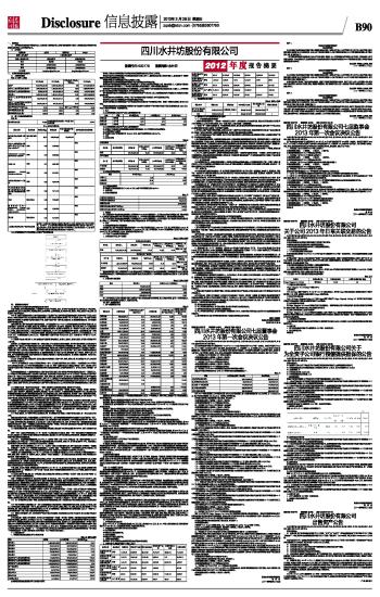 股票代码:600779 股票简称:水井坊 四川水井坊股份有限公司2012年度报告摘要及公告(系列) 2013-03-28 来源:证券时报网 作者: