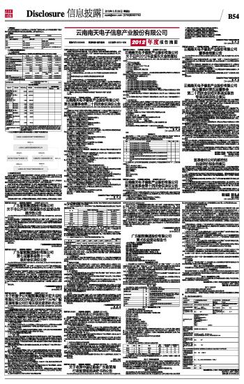 证券代码:000948 证券简称:南天信息 公告编号:2013-008 云南南天电子信息产业股份有限公司2012年度报告摘要及公告(系列) 2013-03-28 来源:证券时报网 作者: