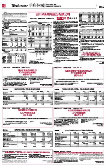 四川科新机电股份有限公司2012年度报告摘要及公告(系列)