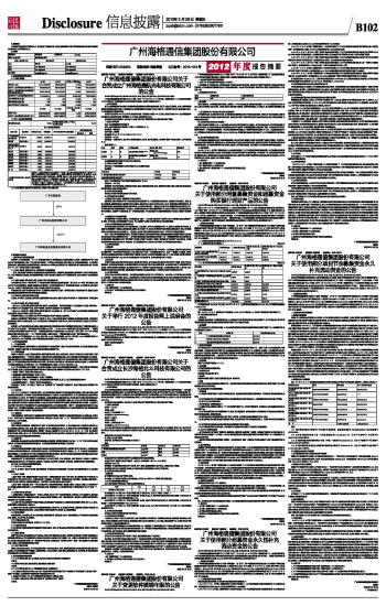 广州海格通信集团股份有限公司2012年度报告摘要及公告(系列)