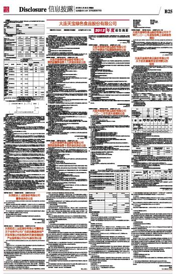 大连天宝绿色食品股份有限公司2012年度报告摘要及公告(系列)