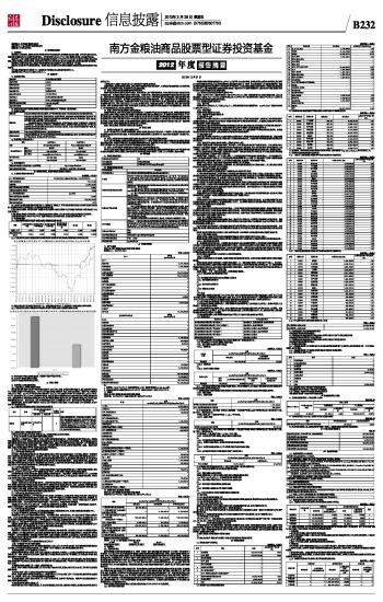 基金管理人:南方基金管理有限公司 基金托管人:中国工商银行股份有限公司 送出日期:2013年3月29日 §1 重要提示及目录 1.1 重要提示 基金管理人的董事会、董事保证本报告所载资料不存在虚假记载、误导性陈述或重大遗漏,并对其内容的真实性、准确性和完整性承担个别及连带的法律责任。本年度报告已经三分之二以上独立董事签字同意,并由董事长签发。 基金托管人中国工商银行股份有限公司根据本基金合同规定,于2013年3月20日复核了本报告中的财务指标、净值表现、利润分配情况、财务会计报告、投资组合报告等内容,保证复核内容不存在虚假记载、误导性陈述或者重大遗漏。 基金管理人承诺以诚实信用、勤勉尽责的原则管理和运用基金资产,但不保证基金一定盈利。 基金的过往业绩并不代表其未来表现。投资有风险,投资者在作出投资决策前应仔细阅读本基金的招募说明书及其更新。 本年度报告摘要摘自年度报告正文,投资者欲了解详细内容,应阅读年度报告正文。 本报告期自2012年09月25日起至12月31日止。 §2 基金简介 2.1 基金基本情况 ■ 注:本基金在交易所行情系统净值揭示等其他信息披露场合下,可简称为“南方金粮油”。 2.2 基金产品说明 ■ 2.3 基金管理人和基金托管人 ■ 2.4 信息披露方式 ■ §3 主要财务指标、基金净值表现及利润分配情况 3.1 主要会计数据和财务指标 金额单位:人民币元 ■ 注:1.本期已实现收益指基金本期利息收入、投资收益、其他收入(不含公允价值变动收益)扣除相关费用后的余额,本期利润为本期已实现收益加上本期公允价值变动收益。 2.期末可供分配利润,采用期末资产负债表中未分配利润与未分配利润中已实现部分的孰低数(为期末余额,不是当期发生数)。 3.所述基金业绩指标不包括持有人认购或交易基金的各项费用,计入费用后实际收益水平要低于所列数字。 4.本基金合同生效日为2012年09月25日,基金合同生效日至本报告期末,本基金运作时间未满一年。 3.2 基金净值表现 3.2.1 基金份额净值增长率及其与同期业绩比较基准收益率的比较 ■ 3.2.2 自基金合同生效以来基金份额累计净值增长率变动及其与同期业绩比较基准收益率变动的比较 ■ 注:基金合同生效日至本报告期末不满一年。本基金建仓期为六个月,截至报告日本基金建仓期尚未结束。 3.2.3 自基金合同生效以来基金每年净值增长率及其与同期业绩比较基准收益率的比较 ■ 注:合同生效当年按实际存续期计算,不按整个自然年度进行折算。 3.3 过去三年基金的利润分配情况 过往三年本基金未有利润分配事项。 §4 管理人报告 4.1 基金管理人及基金经理情况 4.1.1 基金管理人及其管理基金的经验 南方基金管理有限公司是经中国证监会证监基字[1998]4号文批准,由南方证券有限公司、厦门国际信托投资公司、广西信托投资公司共同发起设立。2000年,经中国证监会证监基金字[2000]78号文批准进行了增资扩股,注册资本达到1亿元人民币。2005年,经中国证监会证监基金字[2005]201号文批准进行增资扩股,注册资本达1.5亿元人民币。2010年,经证监许可[2010]1073号文核准深圳市机场(集团)有限公司将其持有的30%股权转让给深圳市投资控股有限公司。目前股权结构:华泰证券股份有限公司45%、深圳市投资控股有限公司30%、厦门国际信托有限公司15%及兴业证券股份有限公司10%。公司在北京、上海、合肥等地设有分公司,在香港设有子公司--南方东英资产管理有限公司。 截至报告期末,公司管理资产规模近2,300亿元,旗下管理37只开放式基金,2只封闭式基金,多个全国社保、企业年金和专户理财投资组合。 4.1.2 基金经理(或基金经理小组)及基金经理助理简介 ■ 注:1.此处的任职日期指基金合同生效日。 2.证券从业的含义遵从行业协会《证券业从业人员资格管理办法》的相关规定。 4.2 管理人对报告期内本基金运作遵规守信情况的说明 本报告期内,本基金管理人严格遵守《中华人民共和国证券投资基金法》、《证券投资基金运作管理办法》、《证券投资基金销售管理办法》和《证券投资基金信息披露管理办法》等有关法律法规及各项实施准则、《南方金粮油商品股票型证券投资基金》和其他有关法律法规的规定,本着诚实信用、勤勉尽责的原则管理和运用基金资产,在严格控制风险的基础上,为基金持有人谋求最大利益。本报告期内,基金运作整体合法合规,没有损害基金持有人利益。基金的投资范围、投资比例及投资组合符合有关法律法规及基金合同的规定。 4.3 管理人对报告期内公平交易情况的专项说明 4.3.1 公平交易制度和控制方法 公司根据《证券投资基金管理公司公平交易制度指导意见》和有关法律法规的规定,针对股票、债券的一级市场申购和二级市场交易等投资管理活动,以及授权、研究分析、投资决策、交易执行、业绩评估等投资管理活动相关的各个环节,制定了研究报告审核流程,股票、债券、基金等证券池管理制度和细则,投资决策委员会议事规则,集中交易管理办法,公平交易操作指引,异常交易管理制度等公平交易相关的公司制度或流程指引。通过加强投资决策、交易执行的内部控制,完善对投资交易行为的日常监控和事后分析评估,以及履行相关的报告和信息披露义务,切实防范投资管理业务中的不公平交易和利益输送行为,保护