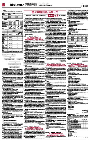 证券代码:002567 证券简称:唐人神 公告编号:2013-039 唐人神集团股份有限公司2012年度报告摘要及公告(系列) 2013-03-29 来源:证券时报网 作者: