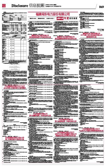证券代码:000993 证券简称:闽东电力 公告编号:2013临-10 福建闽东电力股份有限公司2012年度报告摘要及公告(系列) 2013-03-29 来源:证券时报网 作者: