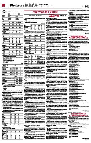证券简称:民生银行 证券代码:600016 中国民生银行股份有限公司2012年度报告摘要及公告(系列) 2013-03-29 来源:证券时报网 作者: