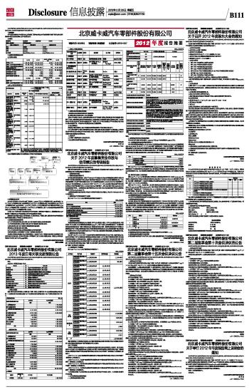 证券代码:002662 证券简称:京威股份 公告编号:2013-007 北京威卡威汽车零部件股份有限公司2012年度报告摘要及公告(系列) 2013-03-29 来源:证券时报网 作者: