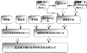 本公司董事会及全体董事保证本公告内容不存在任何虚假记载、误导性陈述或者重大遗漏,并对其内容的真实性、准确性和完整性承担个别及连带责任。 1、重要提示 本年度报告摘要来自年度报告全文,投资者欲了解详细内容,应当仔细阅读同时刊载于深圳证券交易所网站等中国证监会指定网站上的年度报告全文。 公司简介 ■ 2、主要财务数据和股东变化 (1)主要财务数据 ■ (2)前10名股东持股情况表 ■ (3)以方框图形式披露公司与实际控制人之间的产权及控制关系 ■ 3、管理层讨论与分析 本年度公司不断努力开拓市场,实现了营业收入 166,000万元,与上年同期相比增长18%;营业成本 99,757万元;与上年同期相比增长26%;销售费用7,169万元,与上年同期相比增长29%;管理费用8,616万元,与上年同期相比增长18%;财务费用 -2,740万元,上年度为-24万元;实现归属于母公司股东的净利润37,189万元,与上年同期相比增长21%;研发投入2,096万元,与上年同期相比上涨了8.25%;现金及现金等价物净增加额135,190万元,与上年同期相比增长3,966%。 公司在2012年度已实现了向主营业务内外饰件系统的上游延伸的产能和技术,新建铝型材挤出生产线,改造了旧型材挤出生产线,逐步提升内外饰件系统原材料自制率; 随着募投项目的稳步实施,公司不断完善工艺,形成铝合金、不锈钢、塑料、橡胶等材料的多种成型能力和多种表面处理能力,不断提升公司的核心竞争力; 4、涉及财务报告的相关事项 (1)与上年度财务报告相比,会计政策、会计估计和核算方法发生变化的情况说明 与上年度财务报告相比,公司会计政策、会计估计和核算方法未发生变化。 (2)报告期内发生重大会计差错更正需追溯重述的情况说明 报告期内,公司未发生重大会计差错。 (3)与上年度财务报告相比,合并报表范围发生变化的情况说明 本报告期内新纳入合并范围的子公司如下:香港威卡威有限公司 为实现公司及股东利益最大化,公司在香港设立一家全资子公司—香港威卡威有限公司,来收购外方股东所持有的北京威卡威、北京埃贝斯乐铝材、中环零部件三家子公司的少数股东权益。收购后,公司将直接间接合计持有这三家子公司100%的股权。 北京威卡威汽车零部件股份有限公司 董事长:李璟瑜