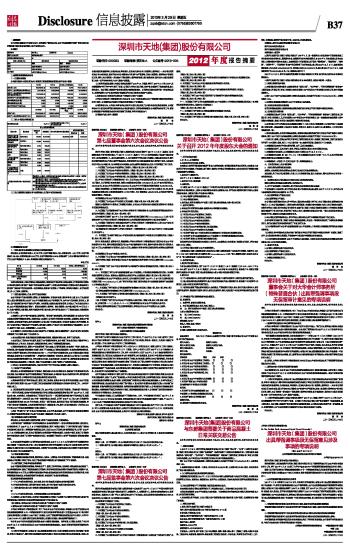 深圳市天地(集团)股份有限公司2012年度报告摘要及公告(系列)