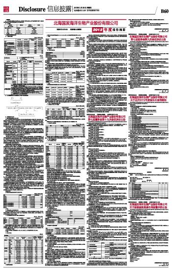 北海国发海洋生物产业股份有限公司2012年度报告摘要及公告(系列)