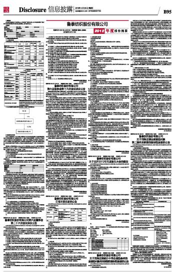 鲁泰纺织股份有限公司2012年度报告摘要及公告(系列)