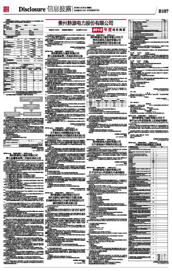 贵州黔源电力股份有限公司2012年度报告摘要及公告(系列)