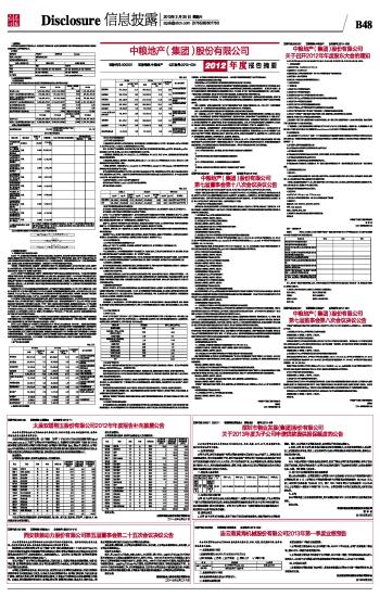 证券代码:000031 证券简称:中粮地产 公告编号:2013-005 中粮地产(集团)股份有限公司2012年度报告摘要及公告(系列) 2013-03-30 来源:证券时报网 作者: