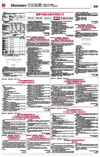 福建中福实业股份有限公司2012年度报告摘要及公告(系列)