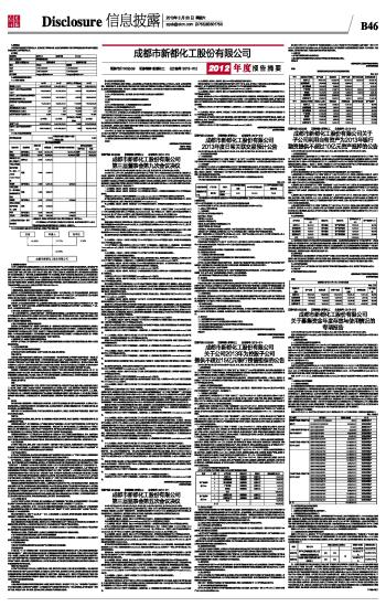 成都市新都化工股份有限公司2012年度报告摘要及公告(系列)