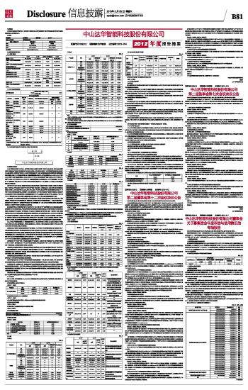 中山达华智能科技股份有限公司2012年度报告摘要及公告(系列)