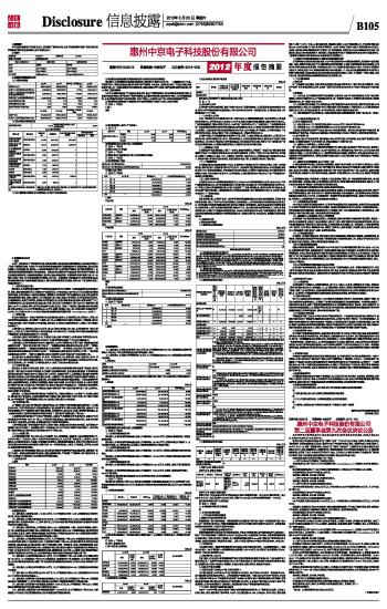 惠州中京电子科技股份有限公司2012年度报告摘要