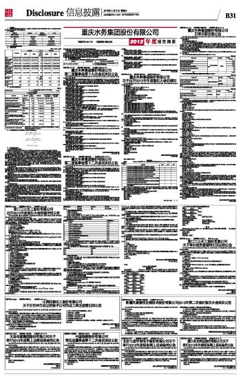 证券代码:601158 证券简称:重庆水务 重庆水务集团股份有限公司2012年度报告摘要及公告(系列) 2013-04-03 来源:证券时报网 作者: