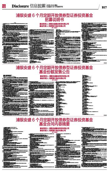 浦银安盛6个月定期开放债券型证券投资基金基金合同内容摘要 2013-04-03 来源:证券时报网 作者: