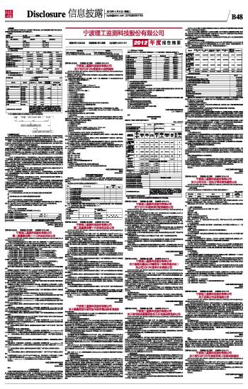 宁波理工监测科技股份有限公司2012年度报告摘要