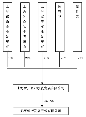 1、重要提示 本年度报告摘要来自年度报告全文,投资者欲了解详细内容,应当仔细阅读同时刊载于深圳证券交易所网站等中国证监会指定网站上的年度报告全文。 公司简介 ■ 2、主要财务数据和股东变化 (1)主要财务数据 公司是否因会计政策变更及会计差错更正等追溯调整或重述以前年度会计数据 □ 是 √ 否 ■ (2)前10名股东持股情况表 ■ (3)以方框图形式披露公司与实际控制人之间的产权及控制关系 ■ 在上述股权控制关系当中,陈齐华系陈炎表的妹夫、上海虞申实业发展有限公司的控股股东及法定代表人罗兴龙系陈炎表配偶的兄长。在信息披露义务人设立时,陈炎表、陈齐华及上海虞申实业发展有限公司将其各自持有的上海舜元企业投资发展有限公司股权中所对应的重大决策、选择管理者、股东会提议提案权、股东会表决权等权利,全部无条件授权陈炎表,因此,陈炎表为公司的实际控制人。 3、管理层讨论与分析 2012年度公司实现营业总收入11,777.81万元,较上年同期增长111.52%,实现利润总额749.45万元,较上年同期增长54.81%,实现归属母公司所有者的净利润244.73万元,较上年同期增长13.93%。 公司回顾总结前期披露的发展战略和经营计划在报告期内的进展情况 报告期内,在公司董事会的领导下,公司顺应国家调控形势,积极应对复杂多变的市场环境,把握宏观经济形势和城镇化进程带来的机遇,不断调整公司经营策略, 坚持以市场需求为导向,以经济效益为核心,制定出一套灵活、稳定、利于公司房地产业务持续发展的经营策略。首先,公司在坚持不懈提升产品品质的前提下,更加关注于项目细节,加强质量控制,精心打造有市场竞争力的产品;同时,也更加关注品牌价值及客户的需求,从而不断提升市场营销工作、不断创新市场营销方式。其次,面对较为严峻的外部市场形势,公司在系统梳理内部制度流程的基础上,进一步提升项目运营管理,从制度和流程上保证公司经营、管理计划的实现。公司依托长兴萧然和成都舜泉为区域拓展平台,紧紧抓住城镇化与二、三线城市快速发展的趋势,积极开拓公司在二、三线城市的房地产业务,稳步推进商铺入世,为公司未来持续盈利提供可靠保障。第三,公司始终将土地作为关系公司长远发展的战略资源,不断根据公司战略、财务能力和产品类型等调整土地储备计划,提升公司的可持续发展能力。第四,公司注重人才引进与培养,提升队伍建设能力,加快对人才培育的速度,对骨干人才加以重用,对高潜质人才进行全方位重点培养,对后备人才加强选拨与培育,对内部员工重视其成长与综合素质的提升,从而为实现公司的经营目标和稳定发展提供坚实的人力资源基础。 根据董事会的部署,2012年公司子公司长兴萧然与合作伙伴联合竞得上虞市经济开发区[2007]J4号地块国有建设用地的土地使用权,扩充了公司的土地储备,进一步提升了公司的可持续发展能力。通过公司管理层经营管理、战略决策等一系列方针政策的不断强化,2012年度,公司核心项目—— “怡和新城E1区”项目按照预定计划完成,皇家湾三期“御园”项目也完成了年初制定的销售计划。 2012年,公司股票恢复上市工作也取得了重大进展,12月31日公司收到深圳证券交易所的《关于同意舜元地产发展股份有限公司股票恢复上市的决定》(深证上[2012] 469号)。2013年2月8日,公司股票经核准恢复上市。 4、涉及财务报告的相关事项 (1)与上年度财务报告相比,会计政策、会计估计和核算方法发生变化的情况说明 与上年度财务报告相比,会计政策、会计估计和核算方法未发生变化。 (2)报告期内发生重大会计差错更正需追溯重述的情况说明 报告期未发生重大会计差错更正需追溯重述的情况。 (3)与上年度财务报告相比,合并报表范围发生变化的情况说明 与上年相比本年新增合并单位1家,原因为:2012年12月26日,公司的子公司长兴萧然与闰土控股集团有限公司、浙江锦盛包装有限公司共同出资设立上虞联谊置业有限公司,其中长兴萧然出资3200万元,持股比例为40%;闰土控股集团有限公司出资2800万元,持股比例为35%;浙江锦盛包装有限公司出资为2000万元,持股比例为25%。三方签订合作协议约定,董事会成员五名,董事分别由股东方提名,其中长兴萧然提名三人;闰土控股公司与浙江锦盛公司分别提名一人,长兴萧然对上虞联谊置业有限公司拥有控制权,因此将其纳入本公司合并范围。 (4)董事会、监事会对会计师事务所本报告期“非标准审计报告”的说明 不适用 舜元地产发展股份有限公司(盖章) 法定代表人:史浩樑 2013年4月9日